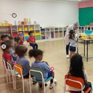 Nossos alunos do Jardim encararam o “Desafio dos Sentidos”, na ‘Oficina com a Nutri’. O objetivo era adivinhar o alimento apenas pelo cheirinho e pelo gosto.